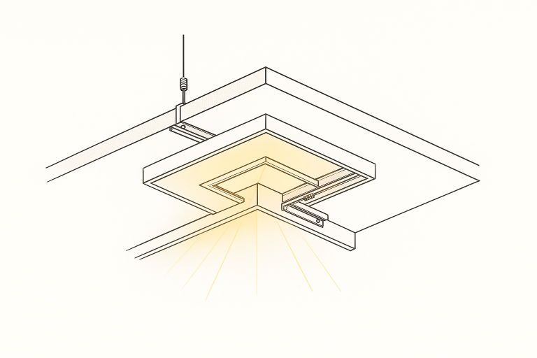 Bu yöntem sayesinde LED hattı göz önünde görünmez; ışık, tavandan yansıyarak mekâna homojen şekilde dağılır. Bayrakcı Metal – Asma Tavan Çözümleri Ekibi, bu sistemi hem konut hem ticari projelerde minimum hata payıyla uygular.