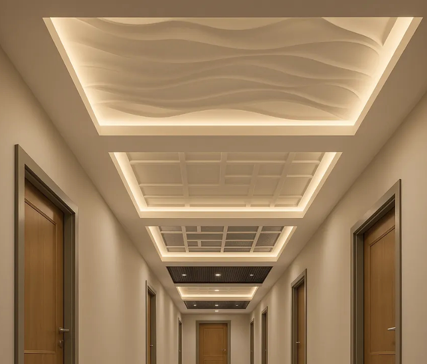 Gizli ışık havuz tavanlar; dekoratif mimarinin öne çıktığı prestijli iç mekânlarda tercih edilir. Hem işlevsel hem estetik bir çözüm sunar.